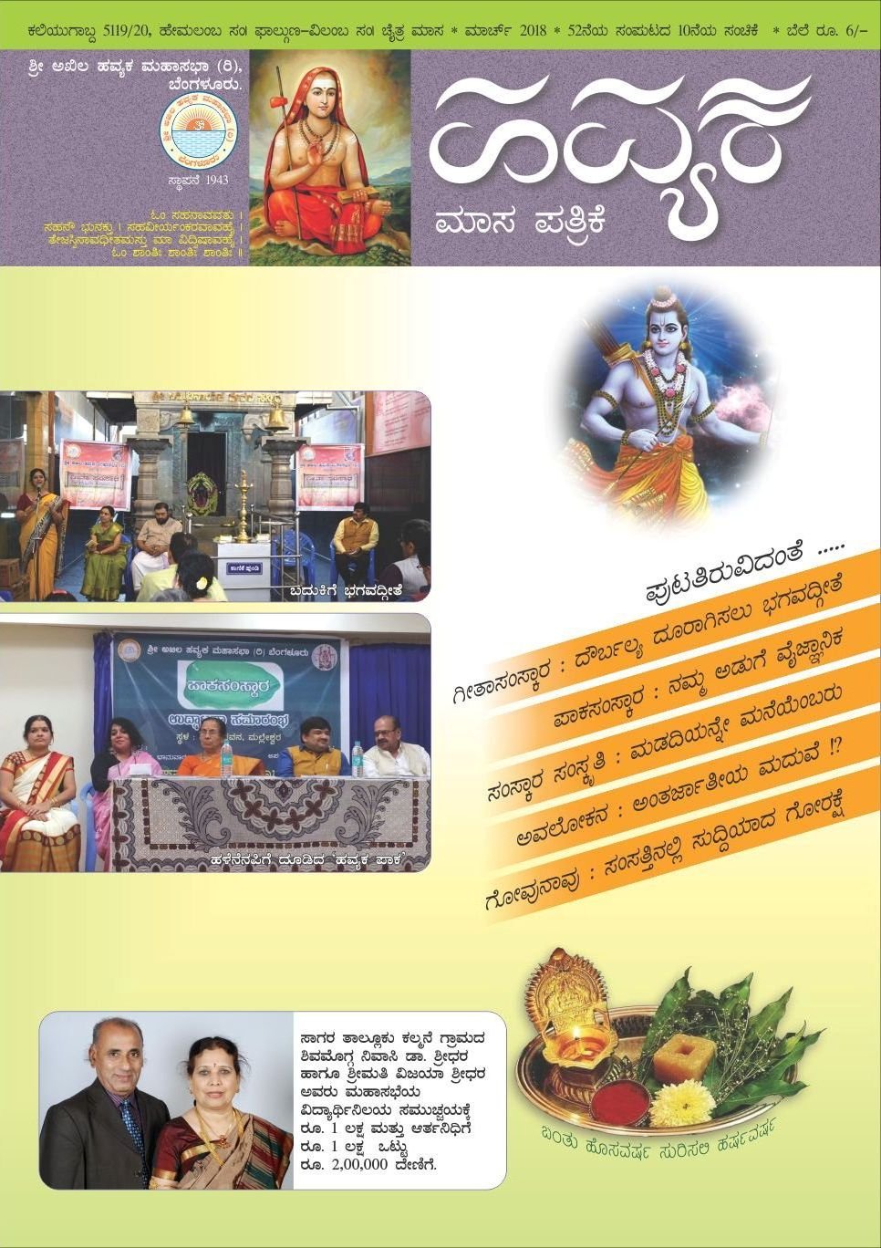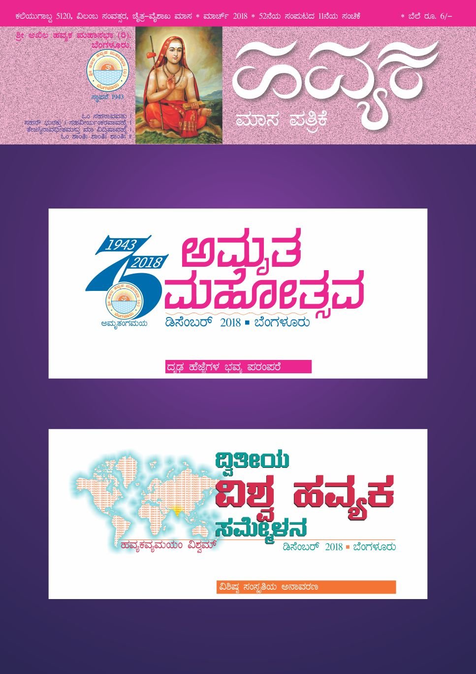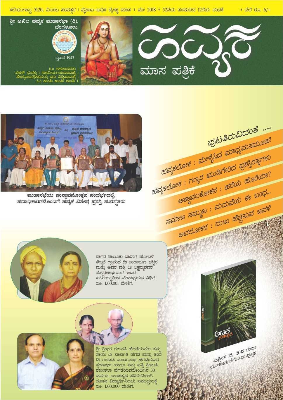 ಕಾಲಚಕ್ರ ತಿರುಗಿದೆ. ಪ್ರಭವಾದಿ ಸಂವತ್ಸರಗಳ ಮಾಲೆಯಲ್ಲಿ ಒಂದು ಸುತ್ತನ್ನು ಪೂರ್ಣಗೊಳಿಸಿರುವ ಹವ್ಯಕ ಮಹಾಸಭೆಯು ಮತ್ತೊಮ್ಮೆ ಇಪ್ಪತ್ತರ ಹರೆಯದಲ್ಲಿದೆ. ‘ಹವ್ಯಕ’ ಪತ್ರಿಕೆಯು ಒಂದು ಸಂವತ್ಸರ ಚಕ್ರವನ್ನು ಪೂರ್ಣಗೊಳಿಸುತ್ತಿದೆ. ಅರವತ್ತೆಂದರೆ ಅದು ಮತ್ತೊಮ್ಮೆ ಅರಳುವ ಹೊತ್ತು. ಷಷ್ಟ್ಯಬ್ದದ ಸಂಭ್ರಮದಲ್ಲಿರುವ ನಮ್ಮ ಹವ್ಯಕ ಪತ್ರಿಕೆಯನ್ನು ಇನ್ನಷ್ಟು ಬೆಳೆಸಲು ಓದುಗರಾದ ಸಮಾಜ ಬಂಧುಗಳ ಸಹಕಾರ ಅತ್ಯಗತ್ಯ. ಪತ್ರಿಕೆಯ ಬೆಳವಣಿಗೆಯ ಹಾದಿಯಲ್ಲಿ ಬರುವ ಪ್ರತಿಸ್ಪಂದಗಳಿಗೆ ’ಹವ್ಯಕ’ ಸದಾ ಮುಕ್ತವಾಗಿರಲಿದೆ. ಸಮಾಜದ ಧ್ವನಿಯಾಗಿ ಹಾಗೂ ಮಹಾಸಭೆಯ ಮುಖವಾಣಿಯಾಗಿ ’ಹವ್ಯಕ’ ಮಾಸಪತ್ರಿಕೆಯು ತನ್ನದೇ ಆದ ವೈಶಿಷ್ಟ್ಯವನ್ನು ಉಳಿಸಿಕೊಂಡು ಮುನ್ನಡೆಯಲು ಸಮಾಜದ ಸಹಕಾರವಿರಲಿ ಎಂಬ ಸದಾಶಯ ಹವ್ಯಕ ಪತ್ರಿಕೆಯದ್ದು.